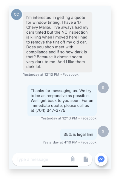 Not only is this possible within Velocity CRM but the same texting automation can be applied to Facebook messaging. Responding to customers across all communication platforms is centralized to a single software maximizing each employees’ time.